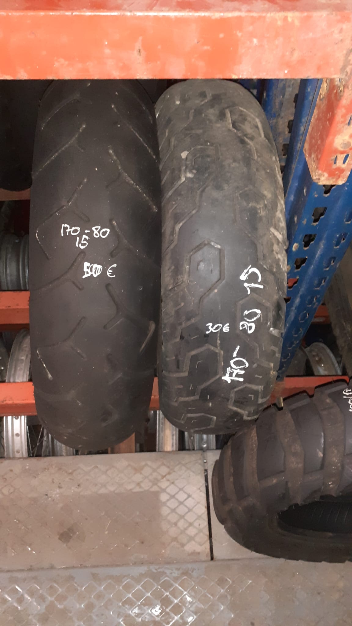 Llantas de ocasión con medida 170/80-15, perfectas para motos custom o scooters de gran cilindrada.